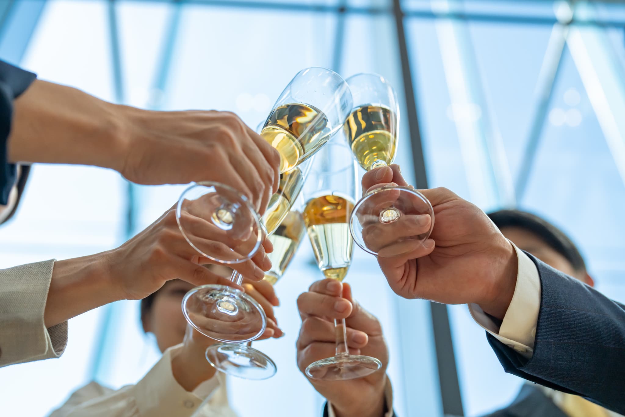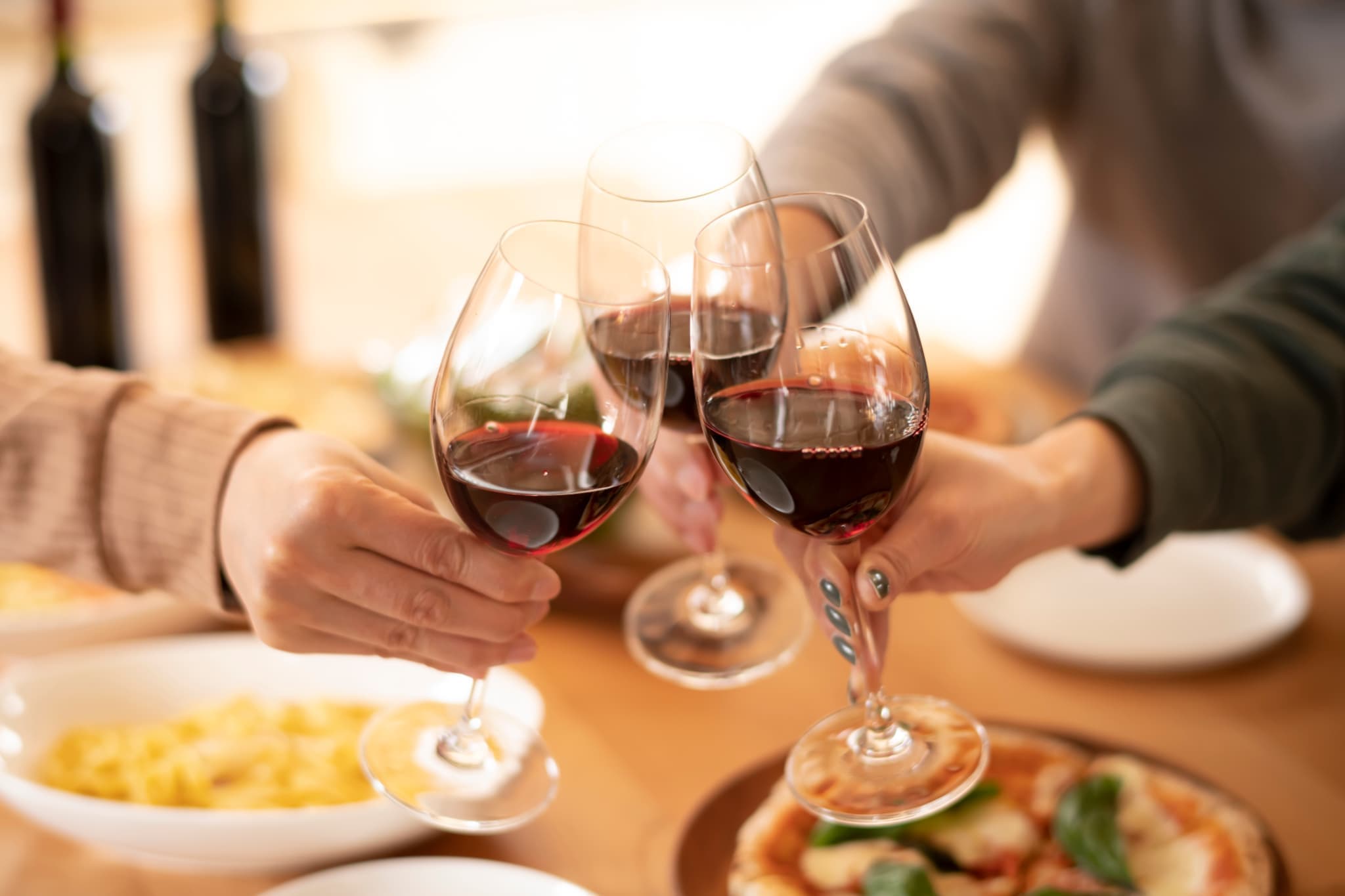 美味しい料理とドリンクを囲んで、
