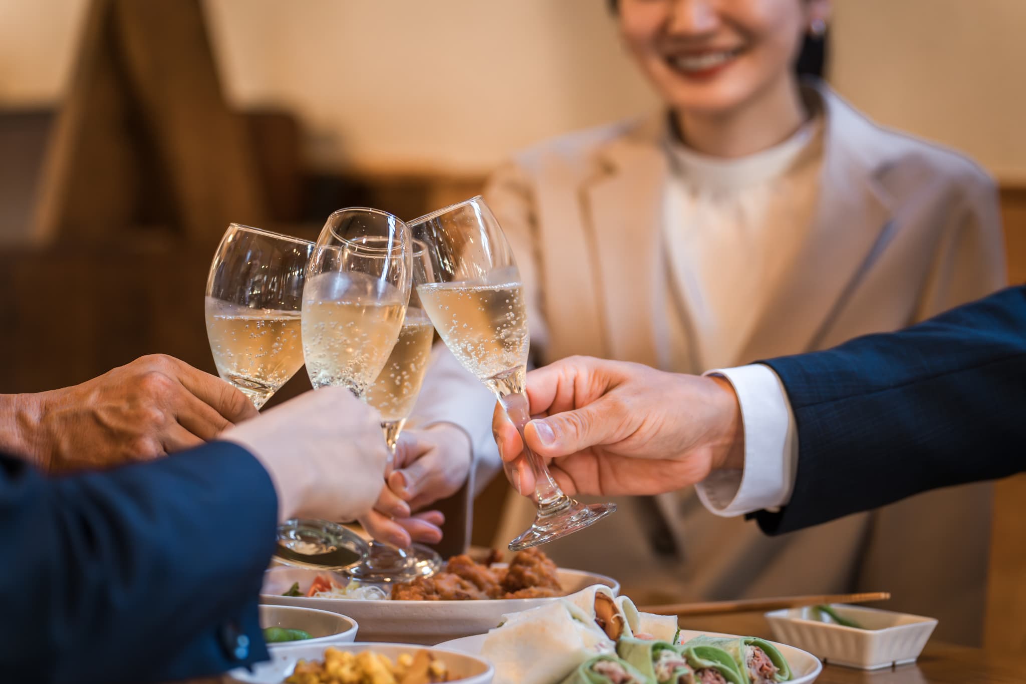 美味しい料理と笑顔で乾杯。
